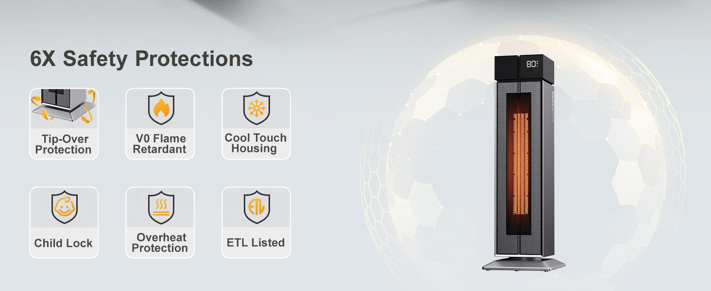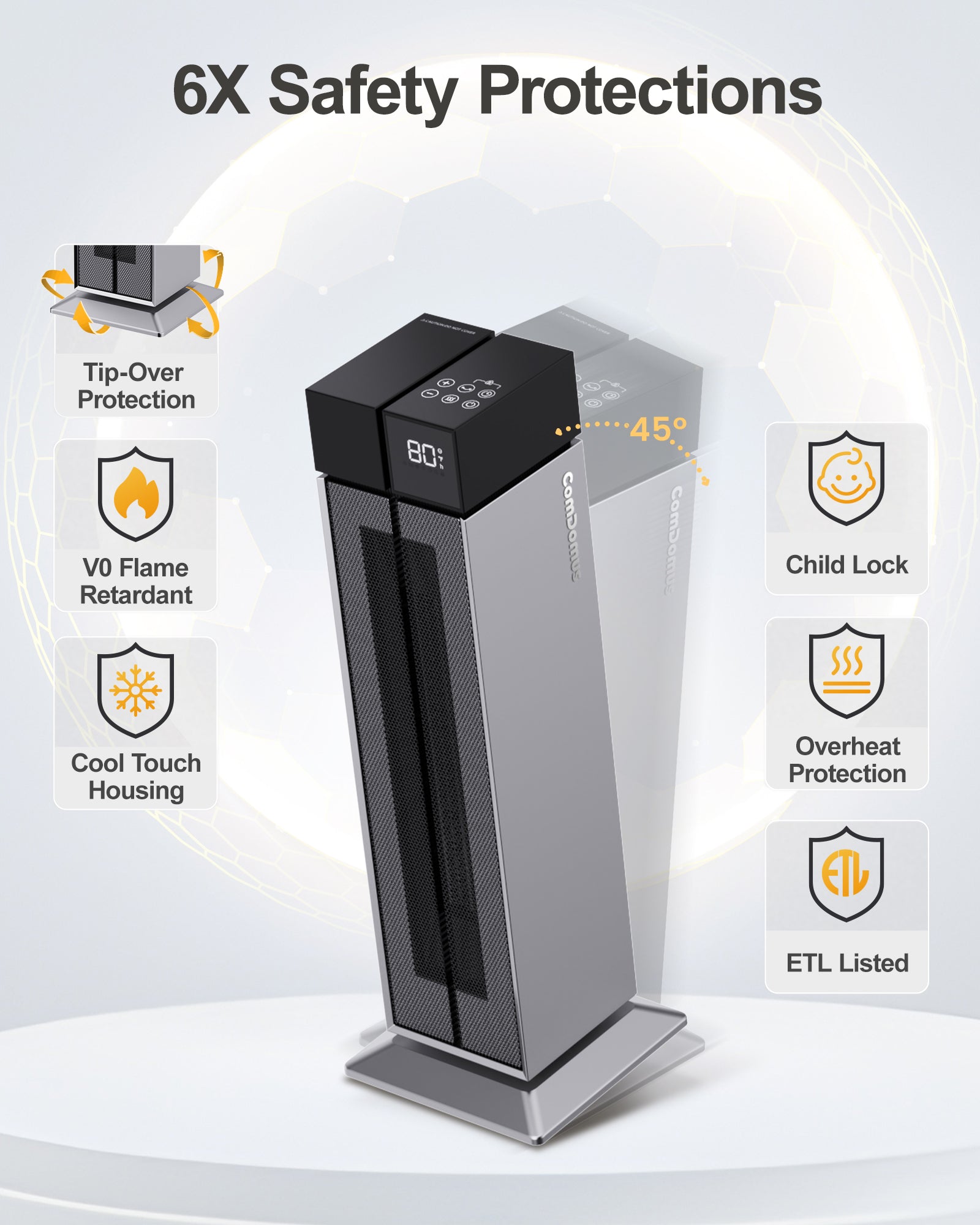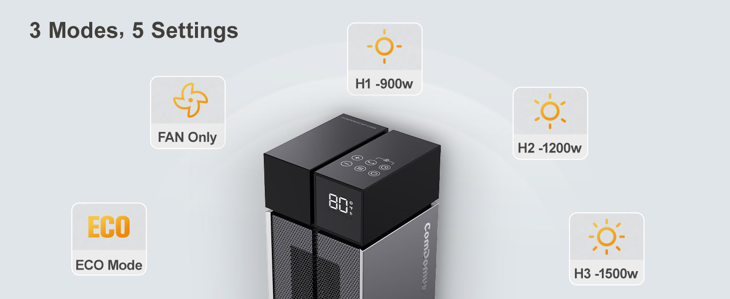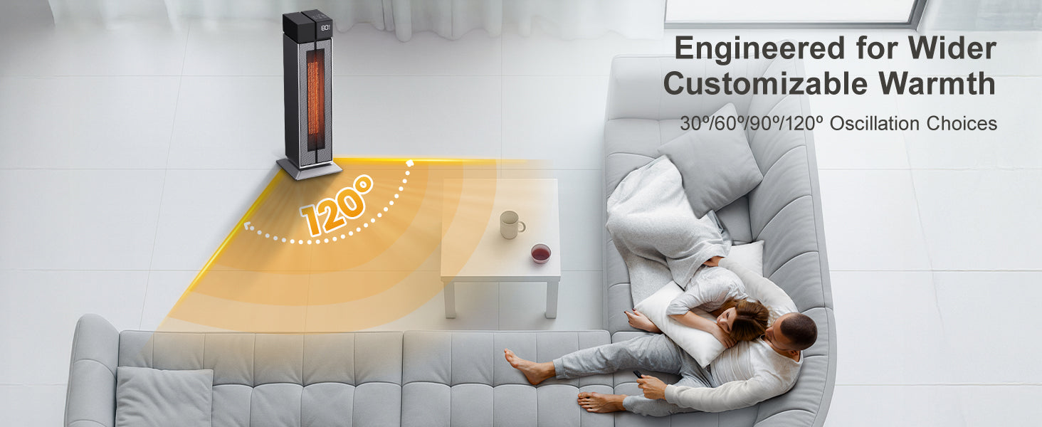 Smart comfort, easy to control, ECO mode (41–95°F) thermostat, and 30/60/90/120 degree adjustable oscillation angles