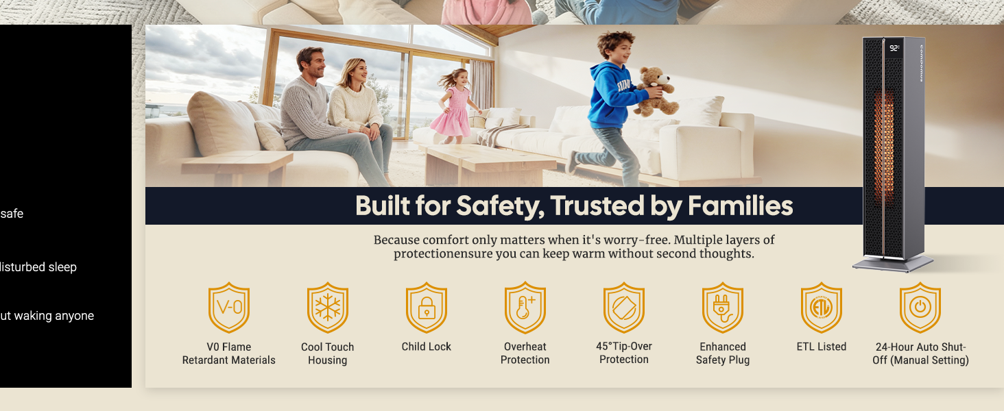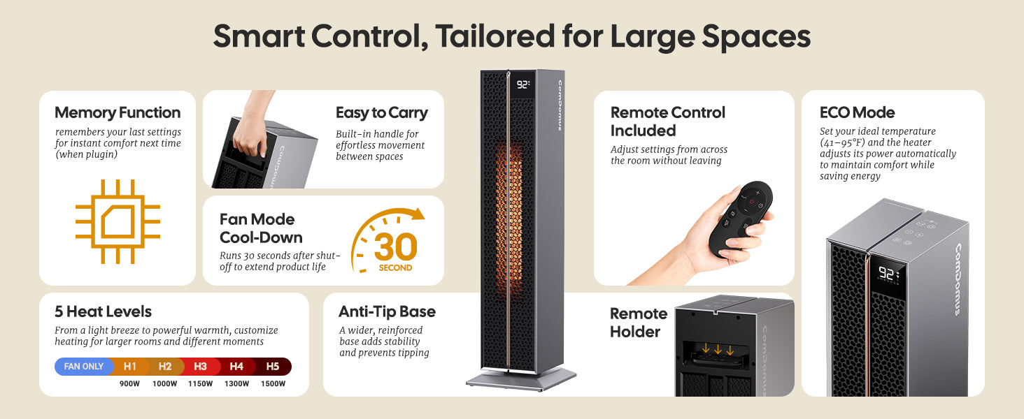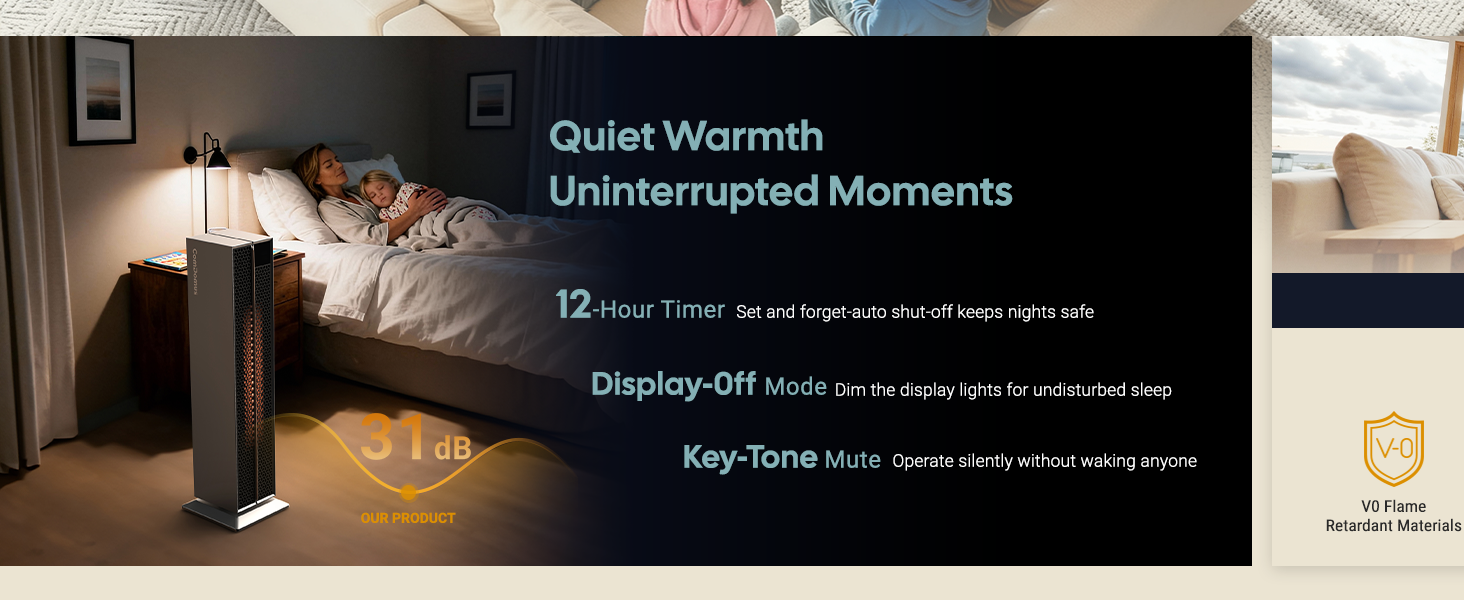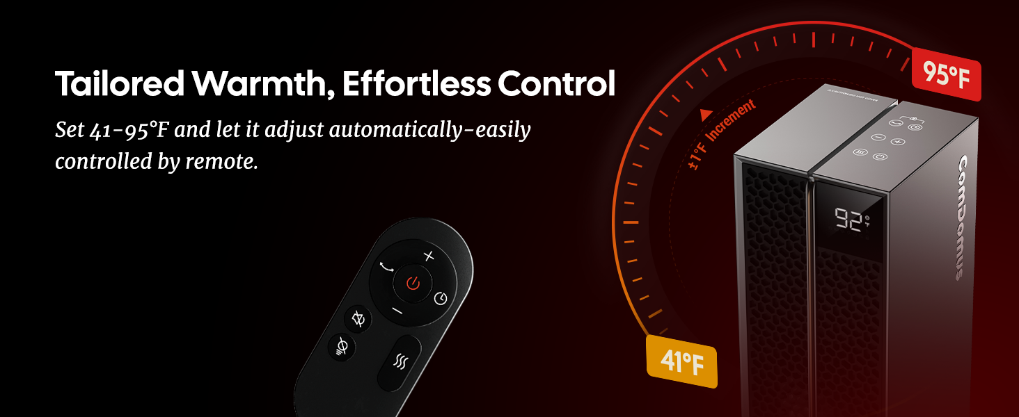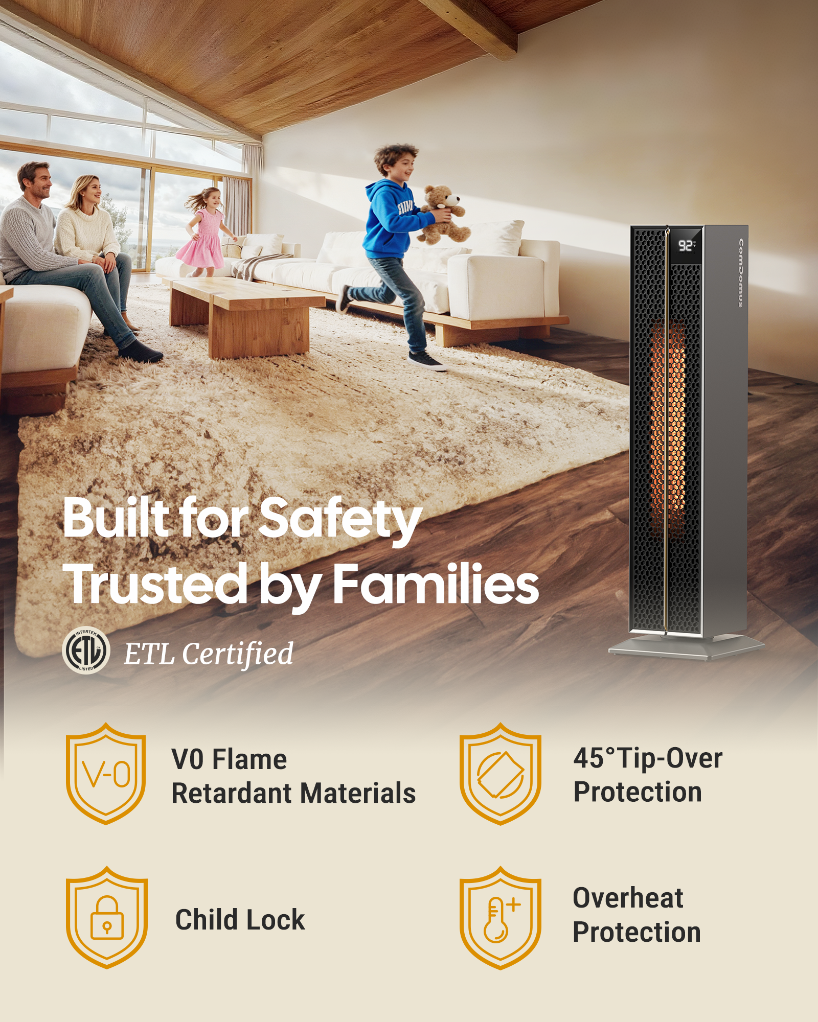 Durable comfort, day after day, from a 2-second rapid heat-up to a 1–12 hour timer and 24h auto shut-off